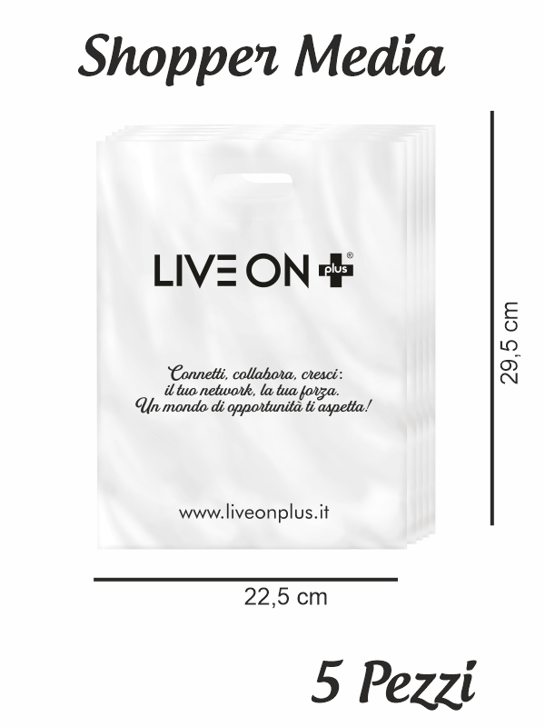 Pratico pacchetto da 5 buste, ciascuna misura 22,5x29 cm, realizzate in plastica lucida e resistente.Ideali per proteggere e contenere i tuoi acquisti, unendo funzionalità ed eleganza....